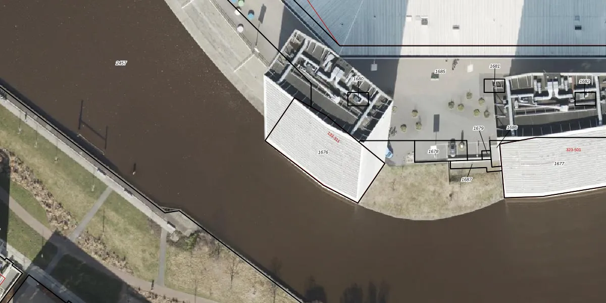 Het adres is gelegen op perceel 1676 in de sectie P en de kadastrale gemeente Groningen. De kadastrale aanduiding is aldus GNG00-P-1676. Het perceel is kleiner dan gemiddeld in Groningen. Het perceel is 663 m² groot, terwijl het gemiddelde ligt op 770,7 m². De grootste perceeloppervlakte in de kadastrale gemeente is 31,8 ha. De kleinste oppervlakte bedraagt 0 m². Op het perceel zijn 90 adressen aanwezig. In de Basisregistratie Kadaster (BRK) werden de grenzen van het perceel geregistreerd op 26-07-2007.