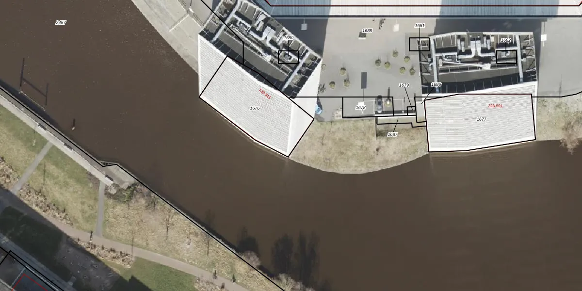 Het adres is gelegen op perceel 1676 in de sectie P en de kadastrale gemeente Groningen. De kadastrale aanduiding is aldus GNG00-P-1676. Het perceel is kleiner dan gemiddeld in Groningen. Het perceel is 663 m² groot, terwijl het gemiddelde ligt op 771,11 m². Het grootste perceel in de kadastrale gemeente is 31,8 ha. Het kleinste perceel heeft een oppervlakte van 0 m². Op het perceel zijn 90 adressen aanwezig. De huidige grenzen van het perceel zijn digitaal in de Basisregistratie Kadaster (BRK) geregistreerd op 26-07-2007.