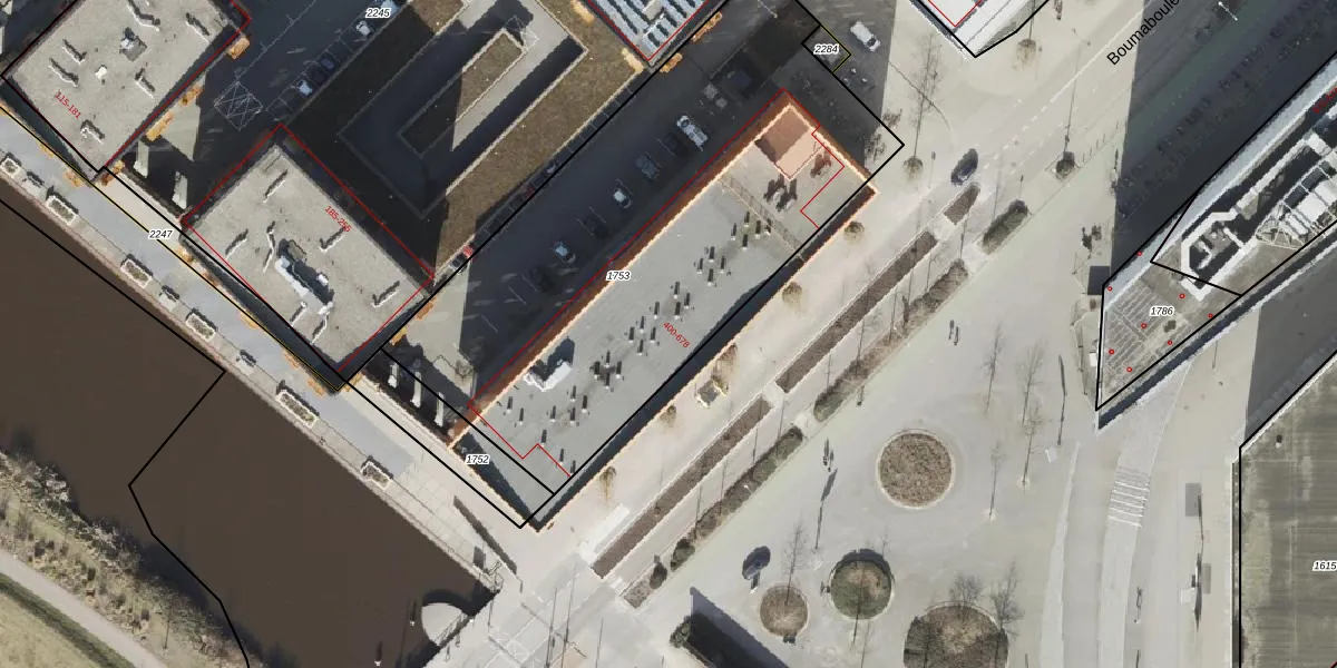 Het perceel waarop Boumaboulevard 462 staat heeft een oppervlakte van 2610 m². Dit is een zeer groot perceel. De perceeloppervlakte wordt geregistreerd door het Kadaster. Gedetailleerde informatie over de maten van dit perceel kunt u vinden in het rapport Kadastrale kaart met maatvoering van Boumaboulevard 462.