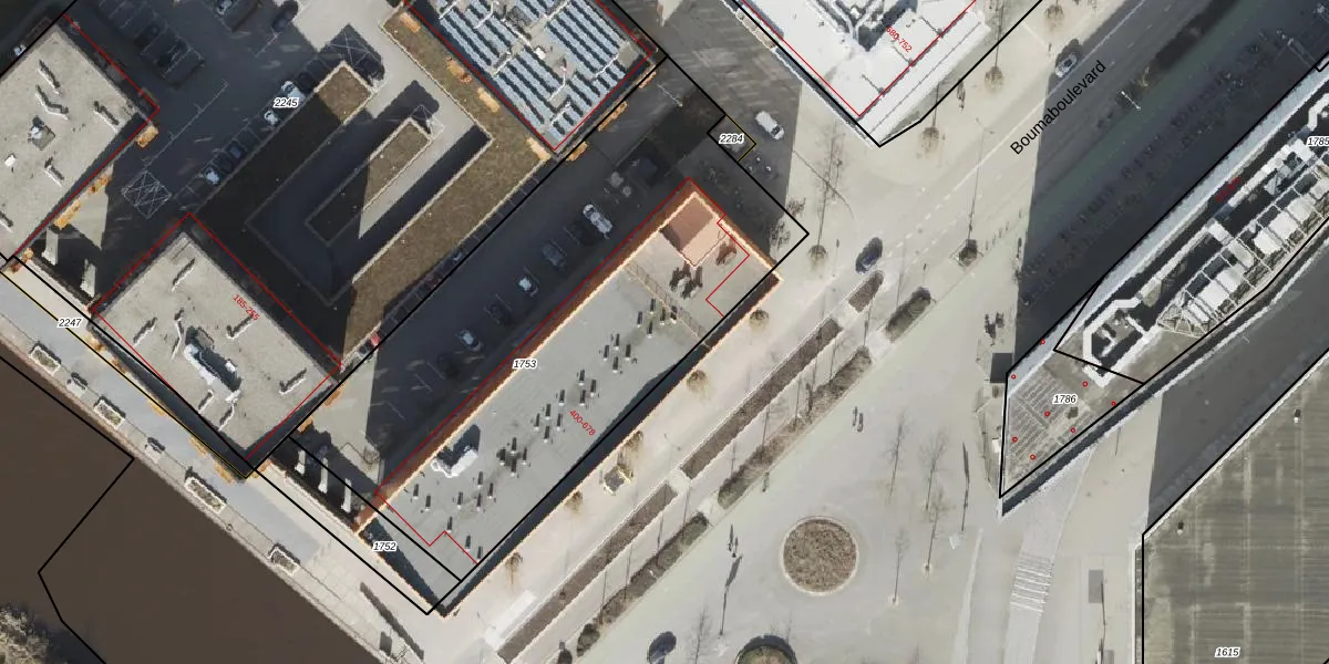 Het perceel waarop Boumaboulevard 472 staat heeft een oppervlakte van 2610 m². Dit is een zeer groot perceel. De perceeloppervlakte wordt geregistreerd door het Kadaster. Gedetailleerde informatie over de maten van dit perceel kunt u vinden in het rapport Kadastrale kaart met maatvoering van Boumaboulevard 472.