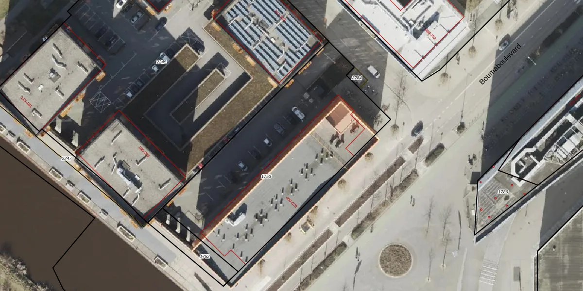 Het perceel waarop Boumaboulevard 554 staat heeft een oppervlakte van 2610 m². Dit is een zeer groot perceel. De perceeloppervlakte wordt geregistreerd door het Kadaster. Gedetailleerde informatie over de maten van dit perceel kunt u vinden in het rapport Kadastrale kaart met maatvoering van Boumaboulevard 554.