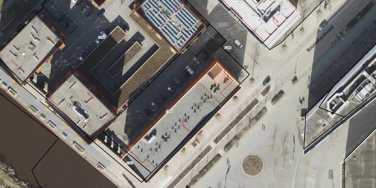 Het perceel waarop Boumaboulevard 620 staat heeft een oppervlakte van 2610 m². Dit is een zeer groot perceel. De perceeloppervlakte wordt geregistreerd door het Kadaster. Gedetailleerde informatie over de maten van dit perceel kunt u vinden in het rapport Kadastrale kaart met maatvoering van Boumaboulevard 620.