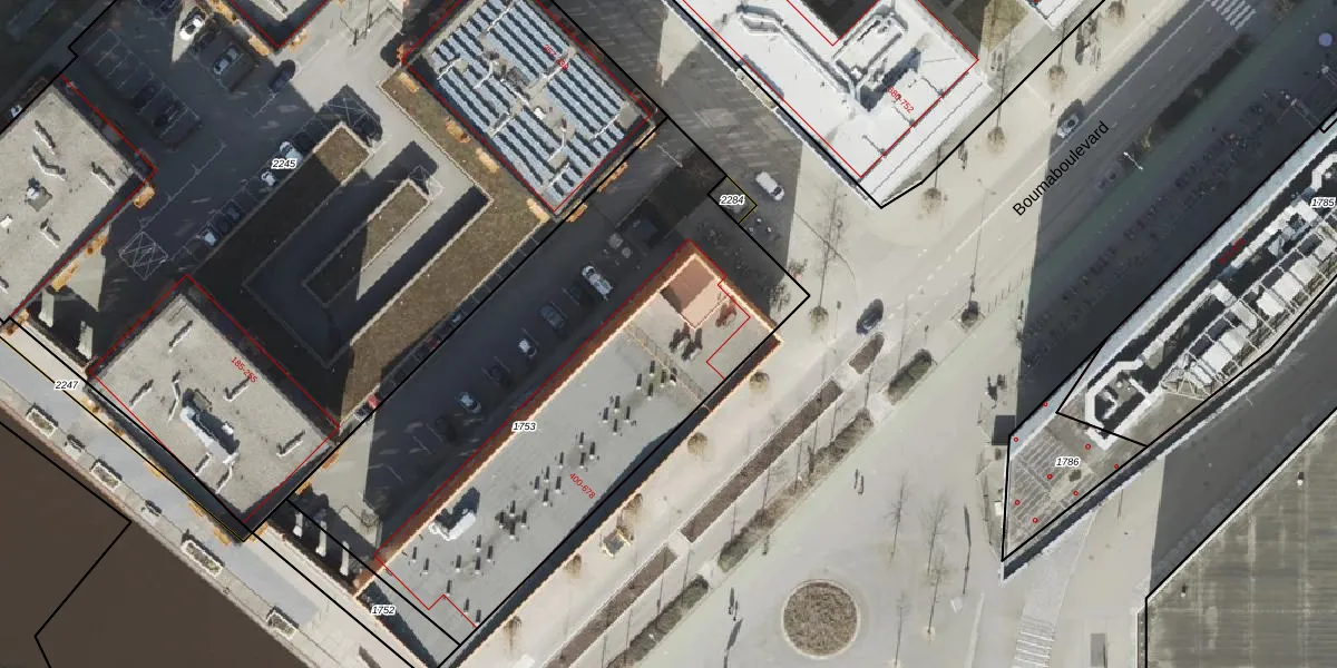 Het perceel waarop Boumaboulevard 674 staat heeft een oppervlakte van 2610 m². Dit is een zeer groot perceel. De perceeloppervlakte wordt geregistreerd door het Kadaster. Gedetailleerde informatie over de maten van dit perceel kunt u vinden in het rapport Kadastrale kaart met maatvoering van Boumaboulevard 674.