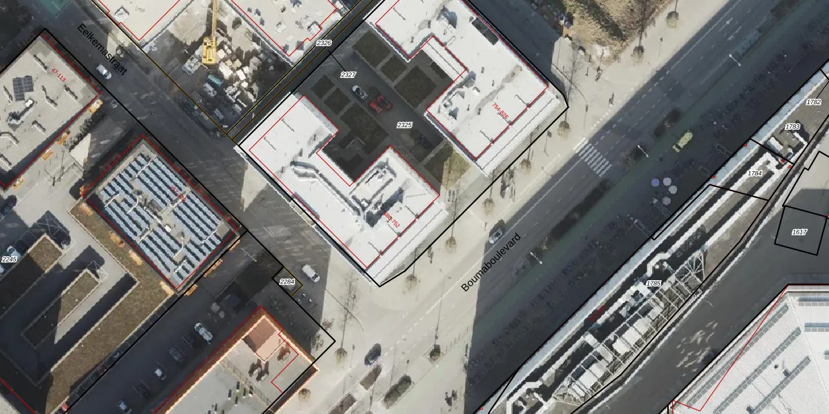 Het perceel waarop Boumaboulevard 688 staat heeft een oppervlakte van 3180 m². Dit is een zeer groot perceel. De perceeloppervlakte wordt geregistreerd door het Kadaster. Gedetailleerde informatie over de maten van dit perceel kunt u vinden in het rapport Kadastrale kaart met maatvoering van Boumaboulevard 688.