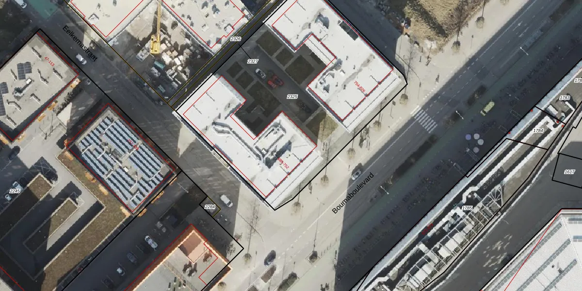 Het perceel waarop Boumaboulevard 700 staat heeft een oppervlakte van 3180 m². Dit is een zeer groot perceel. De perceeloppervlakte wordt geregistreerd door het Kadaster. Gedetailleerde informatie over de maten van dit perceel kunt u vinden in het rapport Kadastrale kaart met maatvoering van Boumaboulevard 700.