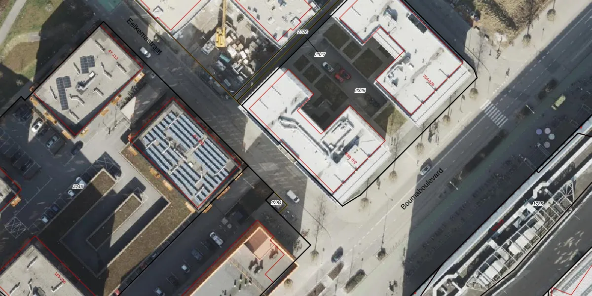 Het perceel waarop Boumaboulevard 728 staat heeft een oppervlakte van 3180 m². Dit is een zeer groot perceel. De perceeloppervlakte wordt geregistreerd door het Kadaster. Gedetailleerde informatie over de maten van dit perceel kunt u vinden in het rapport Kadastrale kaart met maatvoering van Boumaboulevard 728.