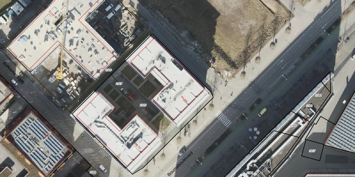Het perceel waarop Boumaboulevard 784 staat heeft een oppervlakte van 3180 m². Dit is een zeer groot perceel. De perceeloppervlakte wordt geregistreerd door het Kadaster. Gedetailleerde informatie over de maten van dit perceel kunt u vinden in het rapport Kadastrale kaart met maatvoering van Boumaboulevard 784.