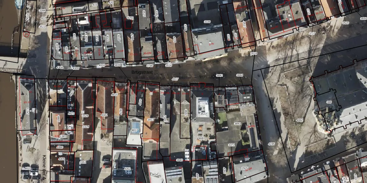 Brugstraat 10 is gelegen op kadastraal perceel GNG00I3841. Deze kadastrale aanduiding is uniek en wordt gebruikt door het Kadaster om eigendomsrechten en andere zakelijke rechten vast te leggen. Het perceel maakt onderdeel uit van de kadastrale gemeente Groningen.