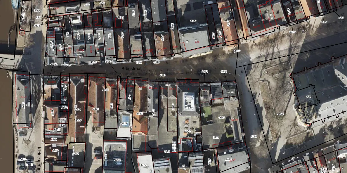 Brugstraat 10-a is gelegen op kadastraal perceel GNG00I3841. Deze kadastrale aanduiding is uniek en wordt gebruikt door het Kadaster om eigendomsrechten en andere zakelijke rechten vast te leggen. Het perceel maakt onderdeel uit van de kadastrale gemeente Groningen.