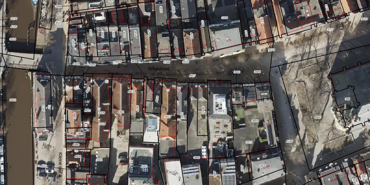 Brugstraat 10-f is gelegen op kadastraal perceel GNG00I3451. Deze kadastrale aanduiding is uniek en wordt gebruikt door het Kadaster om eigendomsrechten en andere zakelijke rechten vast te leggen. Het perceel maakt onderdeel uit van de kadastrale gemeente Groningen.