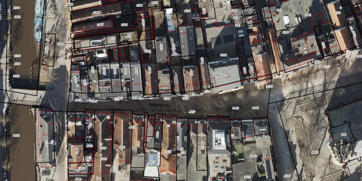 Brugstraat 13-a is gelegen op kadastraal perceel GNG00K3342. Deze kadastrale aanduiding is uniek en wordt gebruikt door het Kadaster om eigendomsrechten en andere zakelijke rechten vast te leggen. Het perceel maakt onderdeel uit van de kadastrale gemeente Groningen.