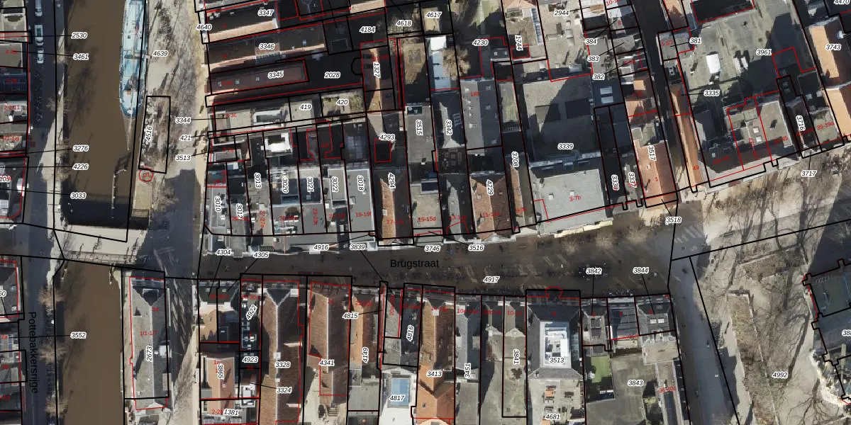 Brugstraat 15-b is gelegen op kadastraal perceel GNG00K3515. Deze kadastrale aanduiding is uniek en wordt gebruikt door het Kadaster om eigendomsrechten en andere zakelijke rechten vast te leggen. Het perceel maakt onderdeel uit van de kadastrale gemeente Groningen.