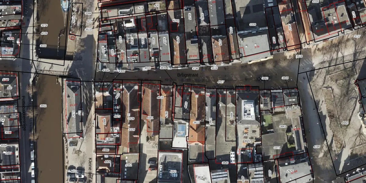 Brugstraat 18 is gelegen op kadastraal perceel GNG00I3839. Deze kadastrale aanduiding is uniek en wordt gebruikt door het Kadaster om eigendomsrechten en andere zakelijke rechten vast te leggen. Het perceel maakt onderdeel uit van de kadastrale gemeente Groningen.