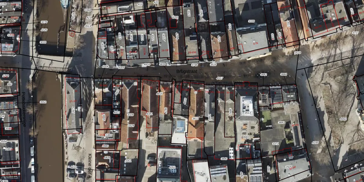 Brugstraat 18-a is gelegen op kadastraal perceel GNG00I4816. Deze kadastrale aanduiding is uniek en wordt gebruikt door het Kadaster om eigendomsrechten en andere zakelijke rechten vast te leggen. Het perceel maakt onderdeel uit van de kadastrale gemeente Groningen.