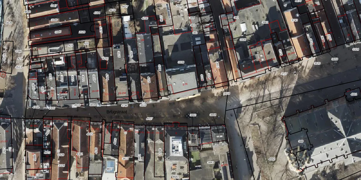 Brugstraat 7-a is gelegen op kadastraal perceel GNG00K3339. Deze kadastrale aanduiding is uniek en wordt gebruikt door het Kadaster om eigendomsrechten en andere zakelijke rechten vast te leggen. Het perceel maakt onderdeel uit van de kadastrale gemeente Groningen.