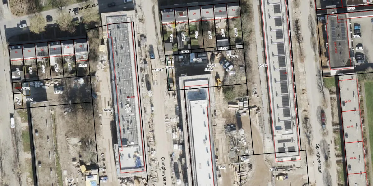 Het perceel waarop Camphuysenstraat 96 staat heeft een oppervlakte van 3306 m². Dit is een zeer groot perceel. De perceeloppervlakte wordt geregistreerd door het Kadaster. Gedetailleerde informatie over de maten van dit perceel kunt u vinden in het rapport Kadastrale kaart met maatvoering van Camphuysenstraat 96.