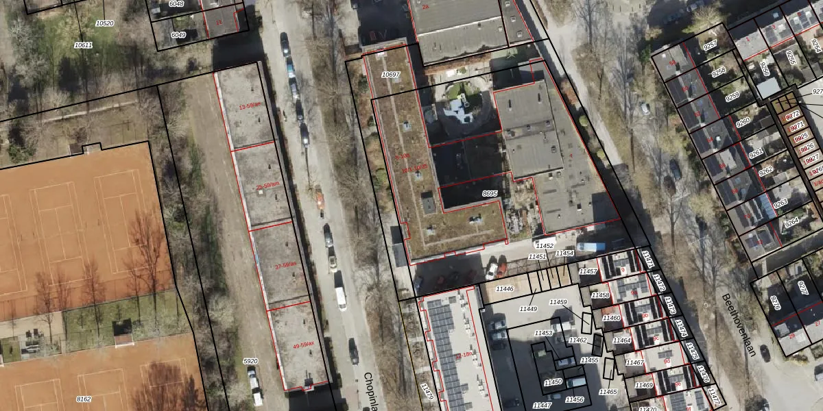 Het perceel waarop Chopinlaan 10-a staat heeft een oppervlakte van 2428 m². Dit is een zeer groot perceel. De perceeloppervlakte wordt geregistreerd door het Kadaster. Gedetailleerde informatie over de maten van dit perceel kunt u vinden in het rapport Kadastrale kaart met maatvoering van Chopinlaan 10-a.
