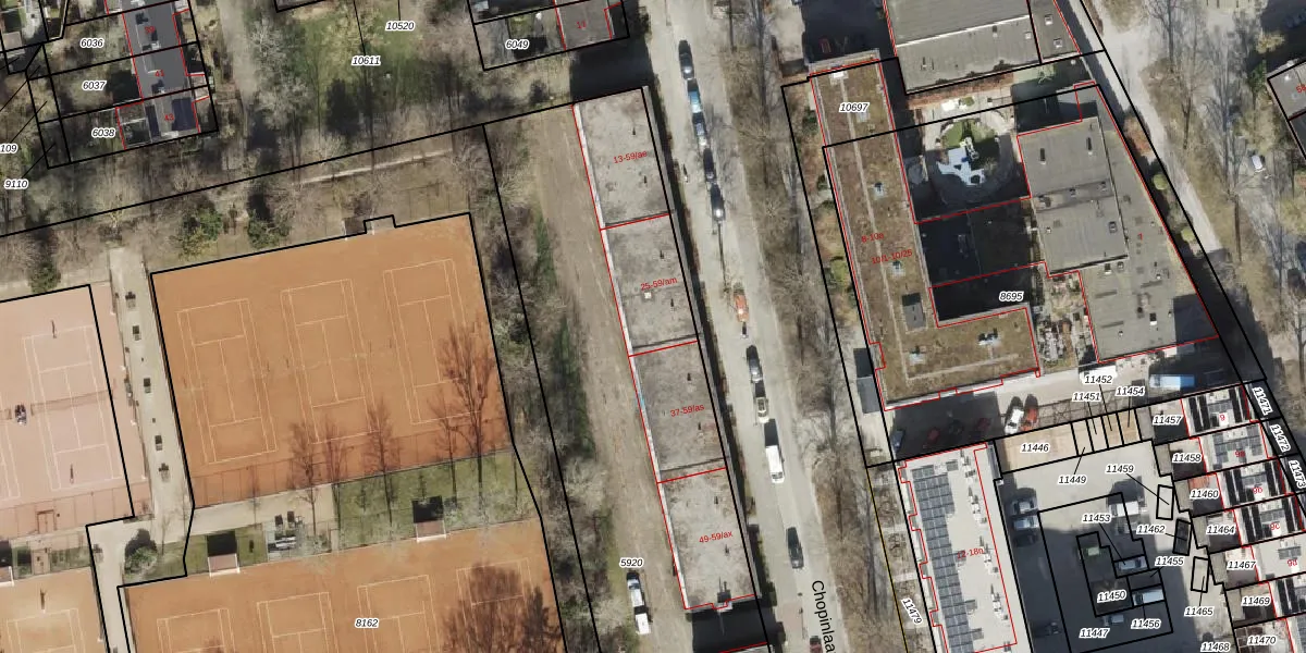 Het perceel waarop Chopinlaan 35 staat heeft een oppervlakte van 3700 m². Dit is een zeer groot perceel. De perceeloppervlakte wordt geregistreerd door het Kadaster. Gedetailleerde informatie over de maten van dit perceel kunt u vinden in het rapport Kadastrale kaart met maatvoering van Chopinlaan 35.