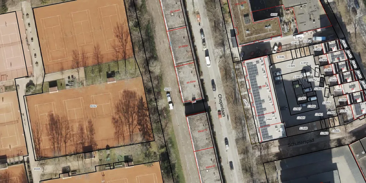 Het perceel waarop Chopinlaan 59-aw staat heeft een oppervlakte van 3700 m². Dit is een zeer groot perceel. De perceeloppervlakte wordt geregistreerd door het Kadaster. Gedetailleerde informatie over de maten van dit perceel kunt u vinden in het rapport Kadastrale kaart met maatvoering van Chopinlaan 59-aw.