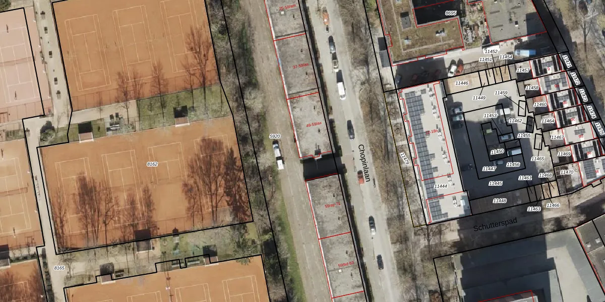 Het perceel waarop Chopinlaan 59-ax staat heeft een oppervlakte van 3700 m². Dit is een zeer groot perceel. De perceeloppervlakte wordt geregistreerd door het Kadaster. Gedetailleerde informatie over de maten van dit perceel kunt u vinden in het rapport Kadastrale kaart met maatvoering van Chopinlaan 59-ax.