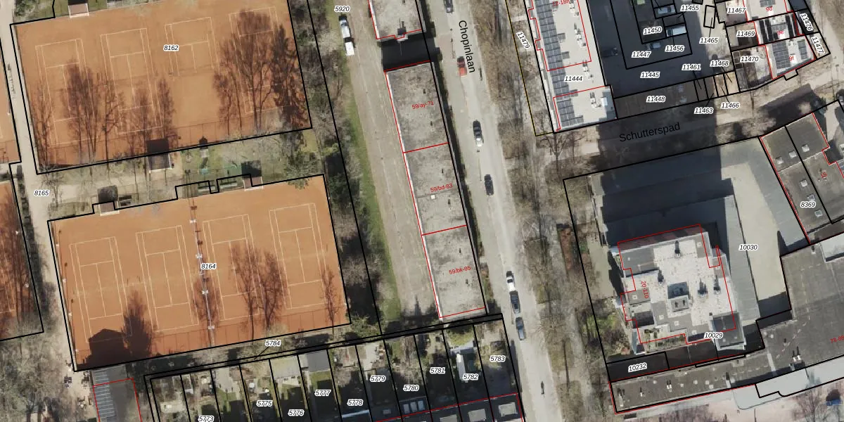 Het perceel waarop Chopinlaan 59-bf staat heeft een oppervlakte van 3700 m². Dit is een zeer groot perceel. De perceeloppervlakte wordt geregistreerd door het Kadaster. Gedetailleerde informatie over de maten van dit perceel kunt u vinden in het rapport Kadastrale kaart met maatvoering van Chopinlaan 59-bf.