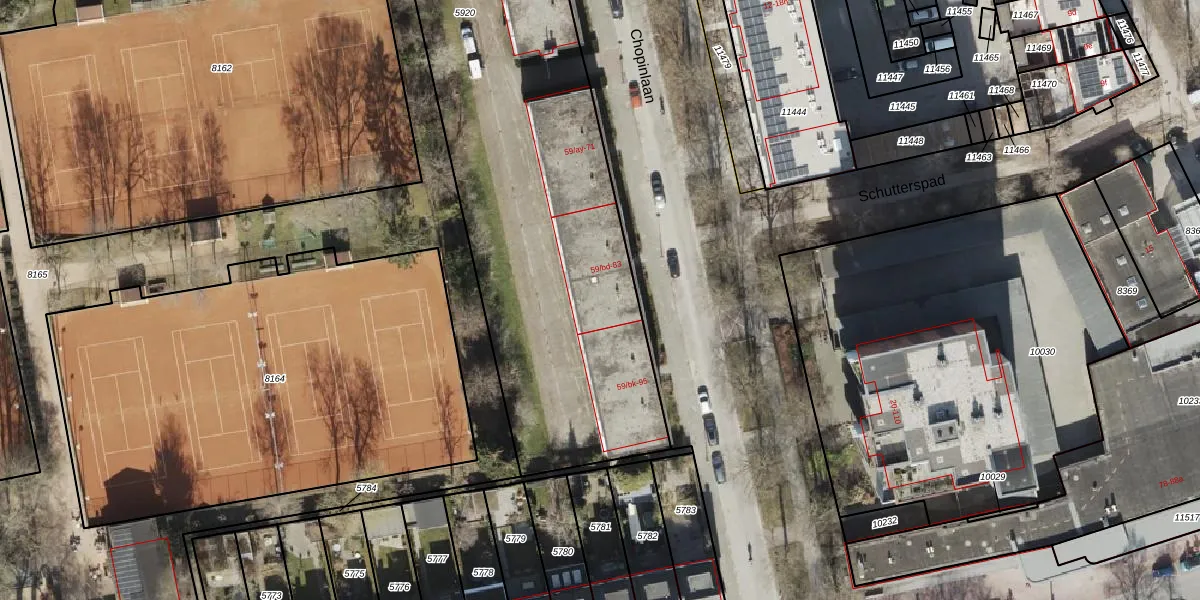 Het perceel waarop Chopinlaan 83 staat heeft een oppervlakte van 3700 m². Dit is een zeer groot perceel. De perceeloppervlakte wordt geregistreerd door het Kadaster. Gedetailleerde informatie over de maten van dit perceel kunt u vinden in het rapport Kadastrale kaart met maatvoering van Chopinlaan 83.