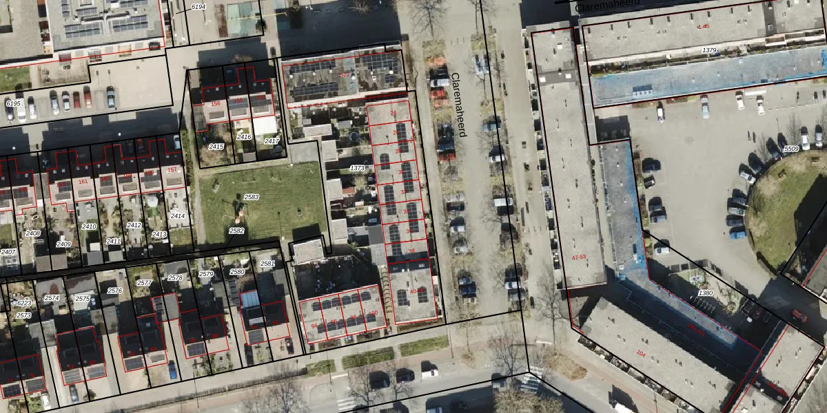 Claremaheerd 34 is gelegen op kadastraal perceel GNG01AB1373. Deze kadastrale aanduiding is uniek en wordt gebruikt door het Kadaster om eigendomsrechten en andere zakelijke rechten vast te leggen. Het perceel maakt onderdeel uit van de kadastrale gemeente Groningen.