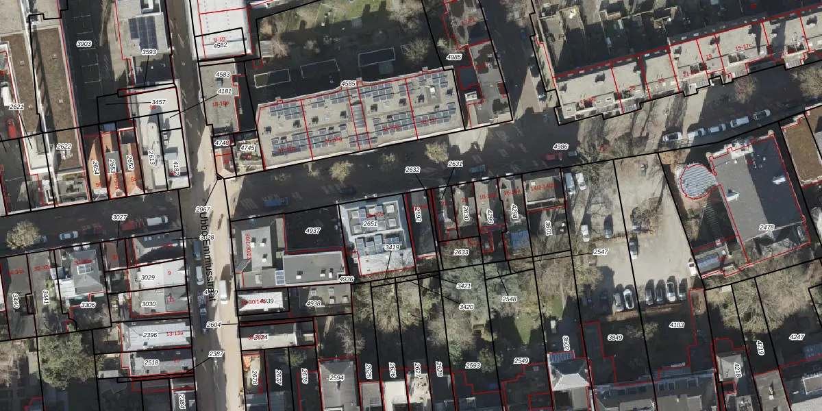 Het perceel waarop het adres ligt is GNG00-I-2592. De afkorting 'GNG00' staat voor kadastrale gemeente Groningen. De gemiddelde perceelgrootte in Groningen is 770,7 m². Dit perceel is kleiner: de perceeloppervlakte bedraagt 116 m². Het grootste perceel in de kadastrale gemeente is 31,8 ha. Het kleinste perceel heeft een oppervlakte van 0 m². Er zijn 3 adressen aanwezig op het perceel. In de Basisregistratie Kadaster (BRK) werden de grenzen van het perceel geregistreerd op 03-07-2003.