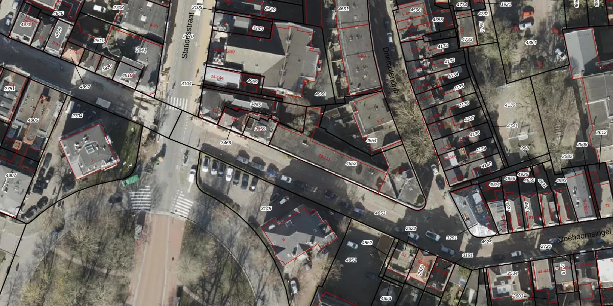 Het adres is gelegen op perceel 4652 in de sectie I en de kadastrale gemeente Groningen. De kadastrale aanduiding is aldus GNG00-I-4652. Het perceel is kleiner dan gemiddeld in Groningen. Het perceel is 658 m² groot, terwijl het gemiddelde ligt op 771,11 m². Het grootste perceel in de kadastrale gemeente is 31,8 ha. Het kleinste perceel heeft een oppervlakte van 0 m². Op het perceel zijn 18 adressen aanwezig. De laatste wijziging in het de Basisregistratie Kadaster (BRK) was op 02-07-2003.