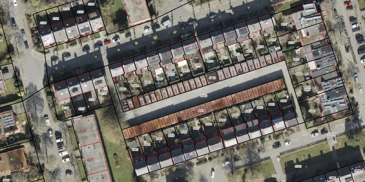 Gebruik de zoekbalk of klik op een perceel voor informatie over de adressen binnen dit perceel.