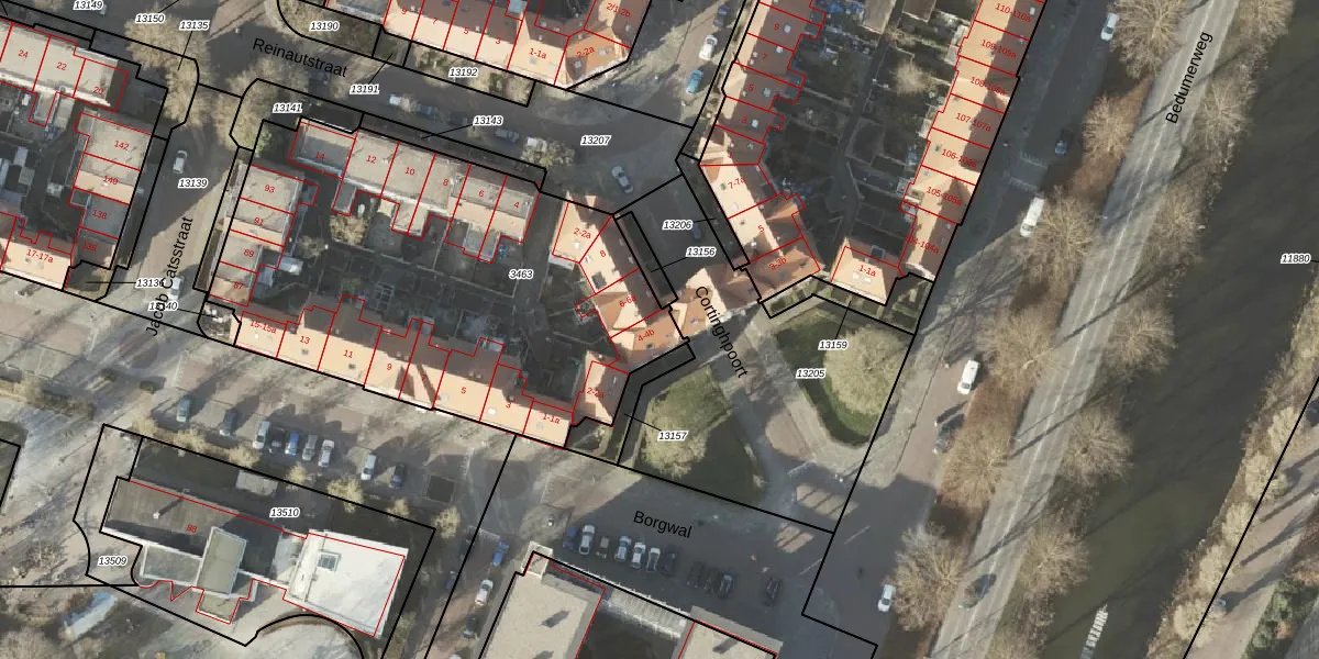Het perceel waarop het adres ligt is GNG00-A-3463. De afkorting 'GNG00' staat voor kadastrale gemeente Groningen. De oppervlakte van het perceel is 2280 m². Dat is groter dan gemiddeld in Groningen, waar de gemiddelde perceeloppervlakte op 772,77 m² ligt. De grootste perceeloppervlakte in de kadastrale gemeente is 31,8 ha. De kleinste oppervlakte bedraagt 0 m². Er zijn 30 adressen aanwezig op het perceel. In de Basisregistratie Kadaster (BRK) werden de grenzen van het perceel geregistreerd op 29-01-2013.