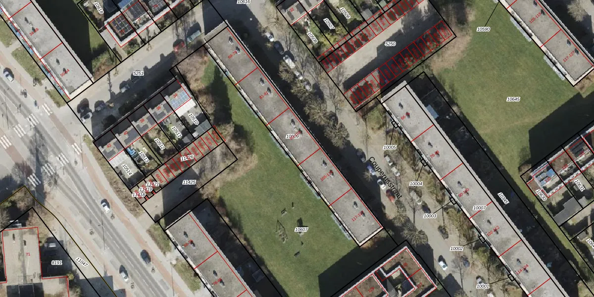 Het perceel waarop Couperusstraat 103 staat heeft een oppervlakte van 901 m². Dit is een groot perceel. De perceeloppervlakte wordt geregistreerd door het Kadaster. Gedetailleerde informatie over de maten van dit perceel kunt u vinden in het rapport Kadastrale kaart met maatvoering van Couperusstraat 103.