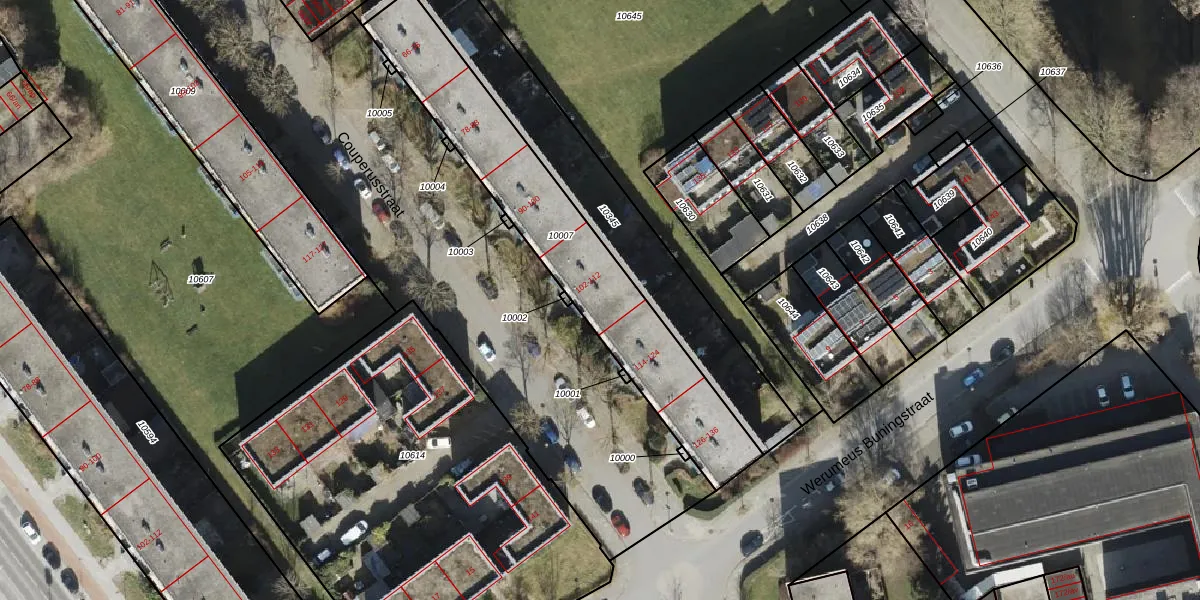Het perceel waarop Couperusstraat 112 staat heeft een oppervlakte van 979 m². Dit is een groot perceel. De perceeloppervlakte wordt geregistreerd door het Kadaster. Gedetailleerde informatie over de maten van dit perceel kunt u vinden in het rapport Kadastrale kaart met maatvoering van Couperusstraat 112.