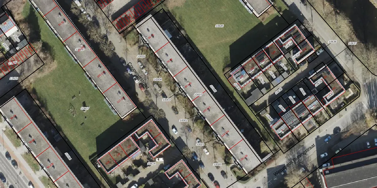 Het perceel waarop Couperusstraat 94 staat heeft een oppervlakte van 979 m². Dit is een groot perceel. De perceeloppervlakte wordt geregistreerd door het Kadaster. Gedetailleerde informatie over de maten van dit perceel kunt u vinden in het rapport Kadastrale kaart met maatvoering van Couperusstraat 94.
