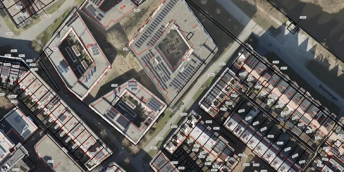 Het perceel waarop Courtine 41 staat heeft een oppervlakte van 6050 m². Dit is een zeer groot perceel. De perceeloppervlakte wordt geregistreerd door het Kadaster. Gedetailleerde informatie over de maten van dit perceel kunt u vinden in het rapport Kadastrale kaart met maatvoering van Courtine 41.