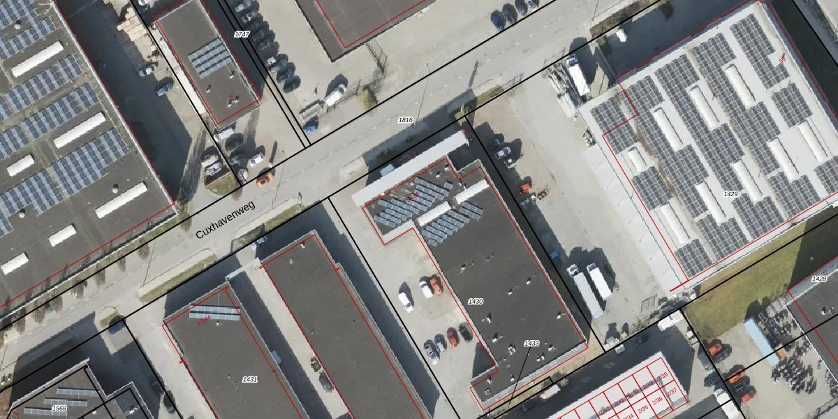 Het perceel waarop Cuxhavenweg 5-e staat heeft een oppervlakte van 2452 m². Dit is een zeer groot perceel. De perceeloppervlakte wordt geregistreerd door het Kadaster. Gedetailleerde informatie over de maten van dit perceel kunt u vinden in het rapport Kadastrale kaart met maatvoering van Cuxhavenweg 5-e.