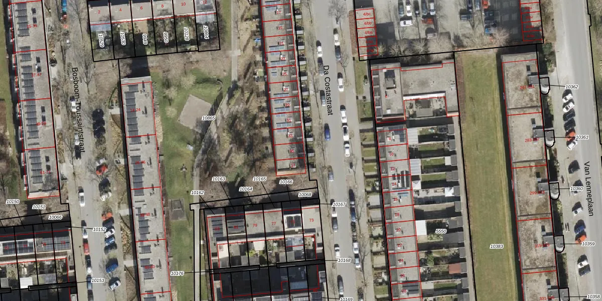 Het perceel waarop Da Costastraat 35 staat heeft een oppervlakte van 5231 m². Dit is een zeer groot perceel. De perceeloppervlakte wordt geregistreerd door het Kadaster. Gedetailleerde informatie over de maten van dit perceel kunt u vinden in het rapport Kadastrale kaart met maatvoering van Da Costastraat 35.