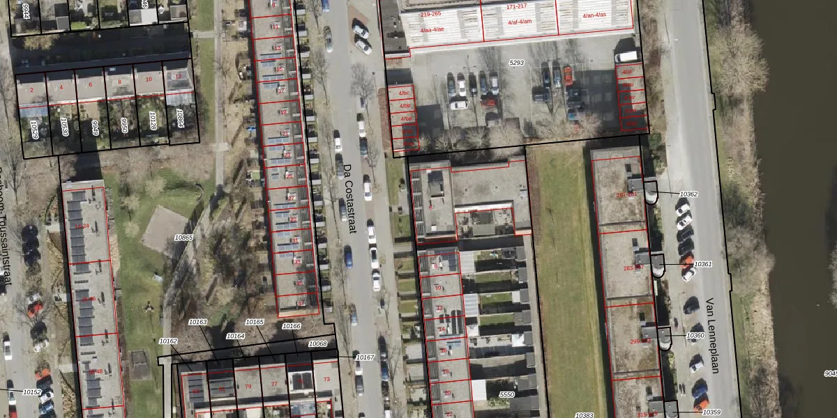 Het perceel waarop Da Costastraat 6 staat heeft een oppervlakte van 2992 m². Dit is een zeer groot perceel. De perceeloppervlakte wordt geregistreerd door het Kadaster. Gedetailleerde informatie over de maten van dit perceel kunt u vinden in het rapport Kadastrale kaart met maatvoering van Da Costastraat 6.