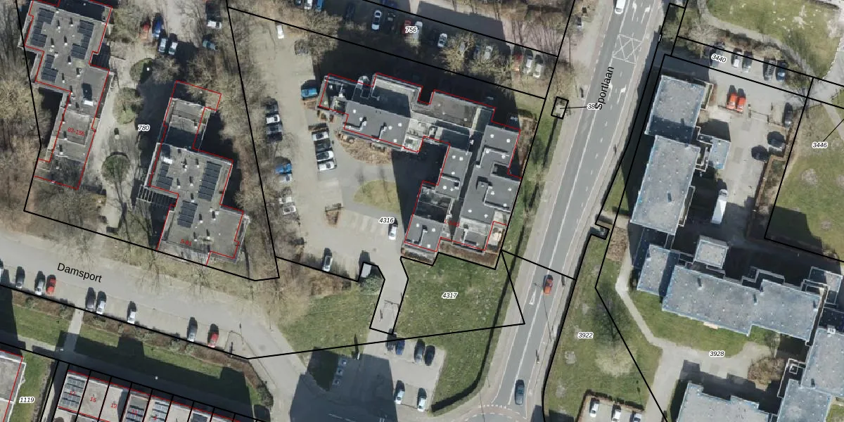 Het perceel waarop Damsport 1-7 staat heeft een oppervlakte van 3303 m². Dit is een zeer groot perceel. De perceeloppervlakte wordt geregistreerd door het Kadaster. Gedetailleerde informatie over de maten van dit perceel kunt u vinden in het rapport Kadastrale kaart met maatvoering van Damsport 1-7.