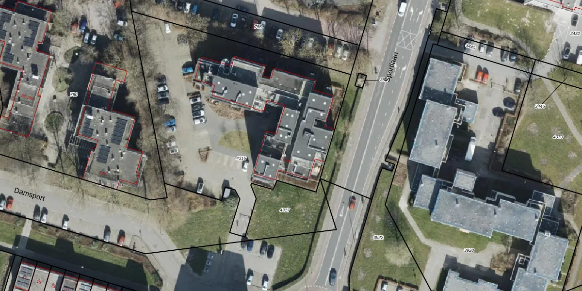 Het perceel waarop Damsport 1-14 staat heeft een oppervlakte van 3303 m². Dit is een zeer groot perceel. De perceeloppervlakte wordt geregistreerd door het Kadaster. Gedetailleerde informatie over de maten van dit perceel kunt u vinden in het rapport Kadastrale kaart met maatvoering van Damsport 1-14.