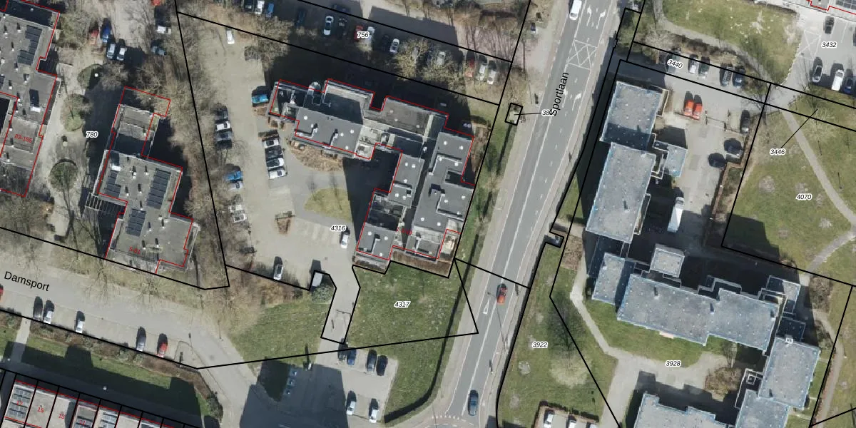 Damsport 1-15 is gelegen op kadastraal perceel HMN02O4316. Deze kadastrale aanduiding is uniek en wordt gebruikt door het Kadaster om eigendomsrechten en andere zakelijke rechten vast te leggen. Het perceel maakt onderdeel uit van de kadastrale gemeente Helpman.
