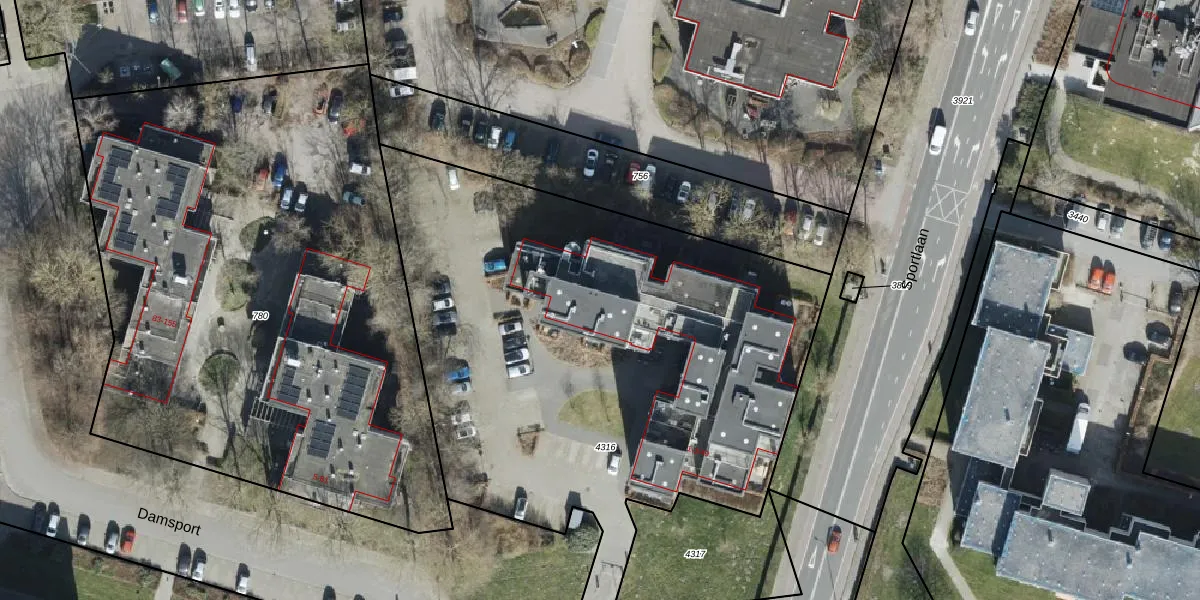 Het perceel waarop Damsport 1-41 staat heeft een oppervlakte van 3303 m². Dit is een zeer groot perceel. De perceeloppervlakte wordt geregistreerd door het Kadaster. Gedetailleerde informatie over de maten van dit perceel kunt u vinden in het rapport Kadastrale kaart met maatvoering van Damsport 1-41.