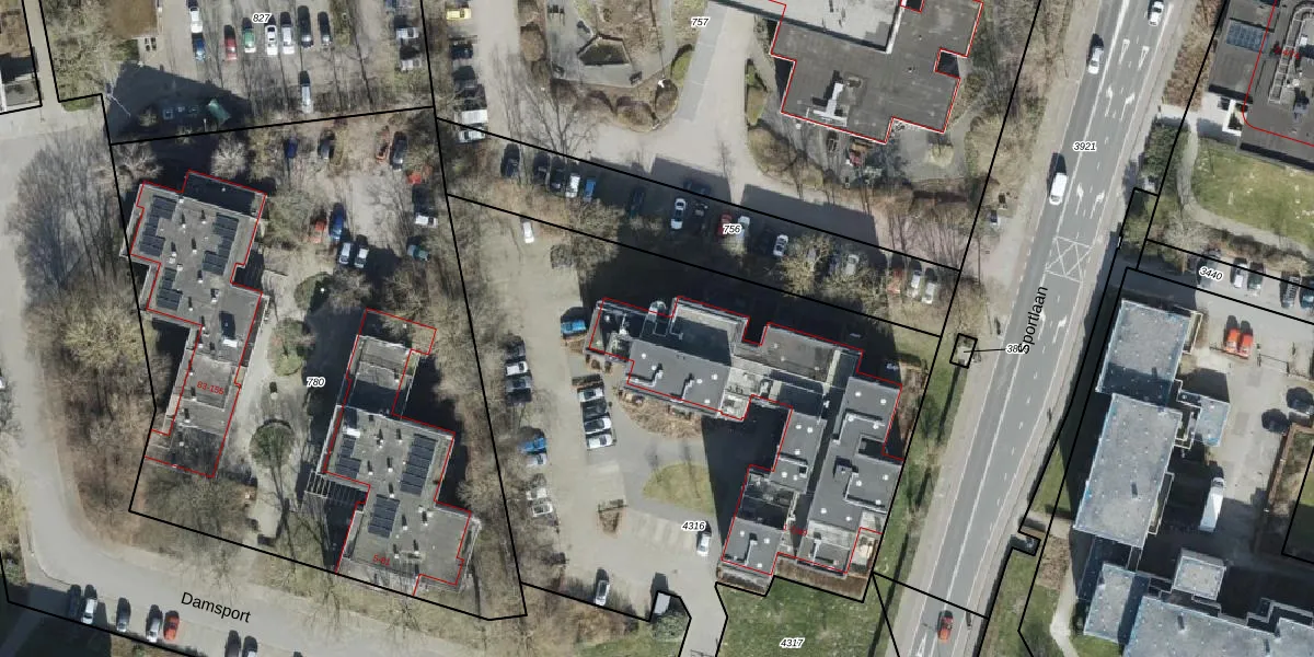 Het perceel waarop Damsport 1-48 staat heeft een oppervlakte van 3303 m². Dit is een zeer groot perceel. De perceeloppervlakte wordt geregistreerd door het Kadaster. Gedetailleerde informatie over de maten van dit perceel kunt u vinden in het rapport Kadastrale kaart met maatvoering van Damsport 1-48.