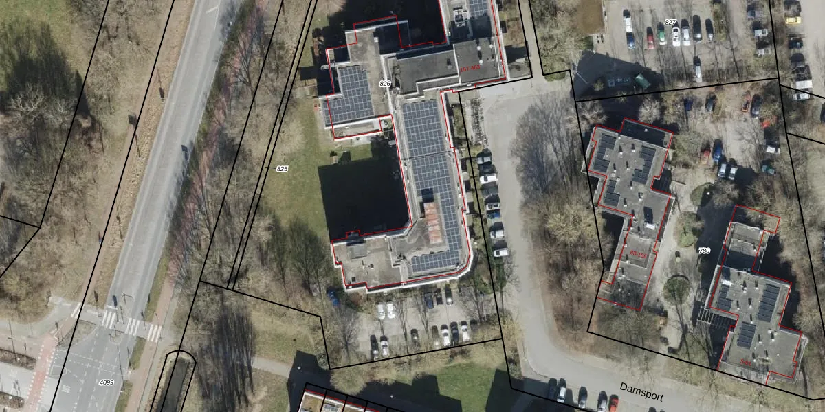 Het perceel waarop Damsport 199 staat heeft een oppervlakte van 5736 m². Dit is een zeer groot perceel. De perceeloppervlakte wordt geregistreerd door het Kadaster. Gedetailleerde informatie over de maten van dit perceel kunt u vinden in het rapport Kadastrale kaart met maatvoering van Damsport 199.
