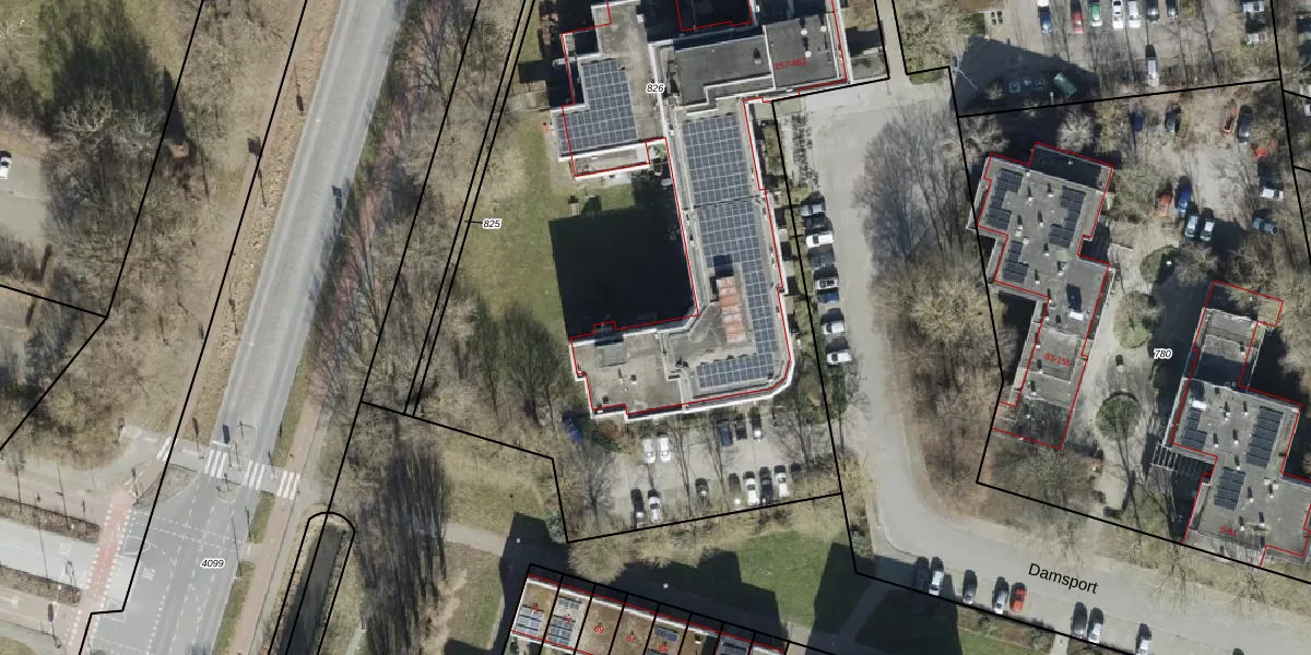 Het perceel waarop Damsport 203 staat heeft een oppervlakte van 5736 m². Dit is een zeer groot perceel. De perceeloppervlakte wordt geregistreerd door het Kadaster. Gedetailleerde informatie over de maten van dit perceel kunt u vinden in het rapport Kadastrale kaart met maatvoering van Damsport 203.