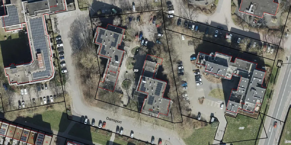 Het perceel waarop Damsport 29 staat heeft een oppervlakte van 3515 m². Dit is een zeer groot perceel. De perceeloppervlakte wordt geregistreerd door het Kadaster. Gedetailleerde informatie over de maten van dit perceel kunt u vinden in het rapport Kadastrale kaart met maatvoering van Damsport 29.