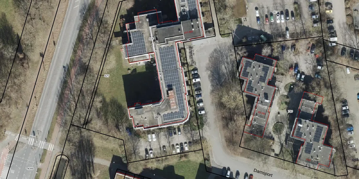 Het perceel waarop Damsport 299 staat heeft een oppervlakte van 5736 m². Dit is een zeer groot perceel. De perceeloppervlakte wordt geregistreerd door het Kadaster. Gedetailleerde informatie over de maten van dit perceel kunt u vinden in het rapport Kadastrale kaart met maatvoering van Damsport 299.