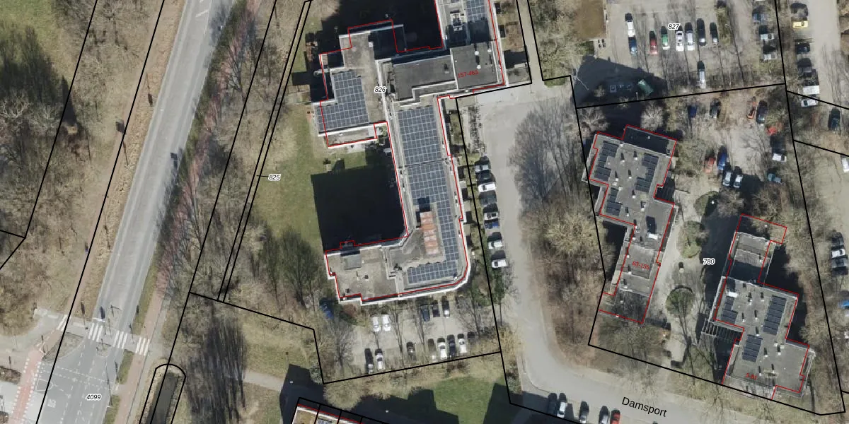 Het perceel waarop Damsport 353 staat heeft een oppervlakte van 5736 m². Dit is een zeer groot perceel. De perceeloppervlakte wordt geregistreerd door het Kadaster. Gedetailleerde informatie over de maten van dit perceel kunt u vinden in het rapport Kadastrale kaart met maatvoering van Damsport 353.