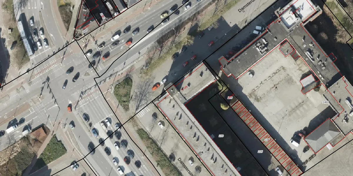 Het perceel waarop Damsterdiep 75 staat heeft een oppervlakte van 2143 m². Dit is een zeer groot perceel. De perceeloppervlakte wordt geregistreerd door het Kadaster. Gedetailleerde informatie over de maten van dit perceel kunt u vinden in het rapport Kadastrale kaart met maatvoering van Damsterdiep 75.
