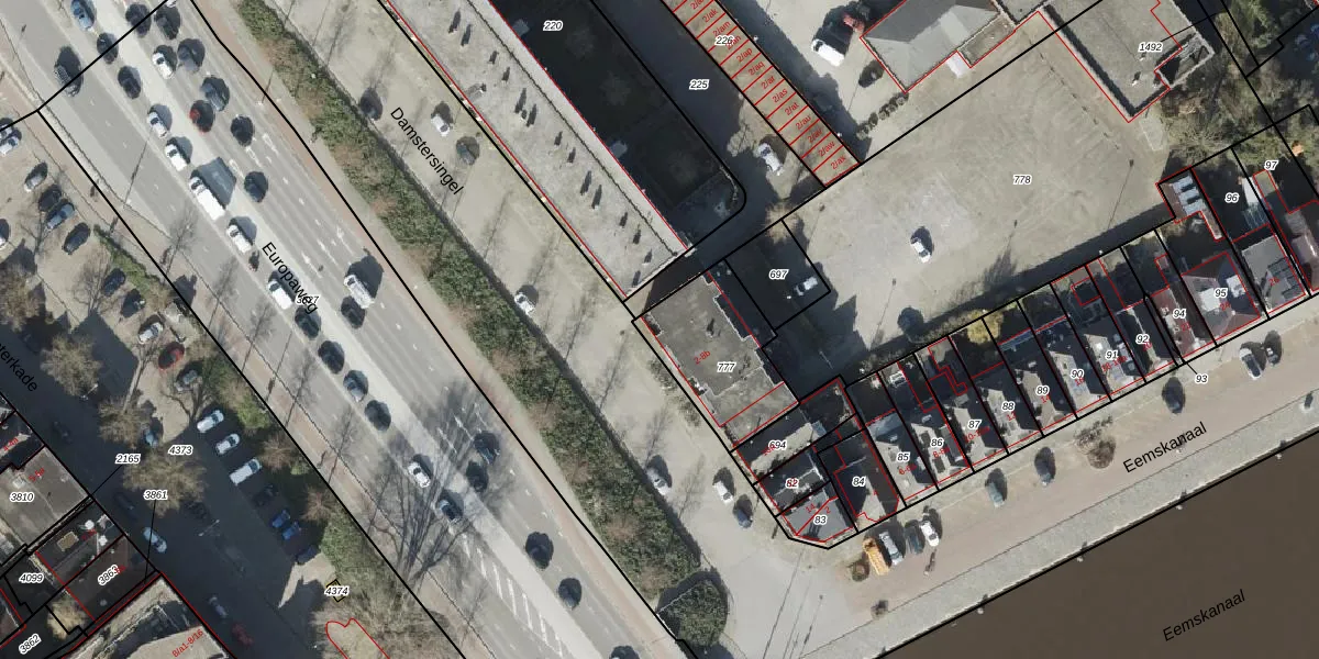 Het adres is gelegen op perceel 777 in de sectie P en de kadastrale gemeente Groningen. De kadastrale aanduiding is aldus GNG00-P-777. Het perceel is kleiner dan gemiddeld in Groningen. Het perceel is 377 m² groot, terwijl het gemiddelde ligt op 771,43 m². Het kleinste perceel in de kadastrale gemeente is 0 m² groot. De grootste perceeloppervlakte is 31,8 ha. Op het perceel liggen in totaal 7 adressen. De laatste wijziging in het de Basisregistratie Kadaster (BRK) was op 05-06-2009.